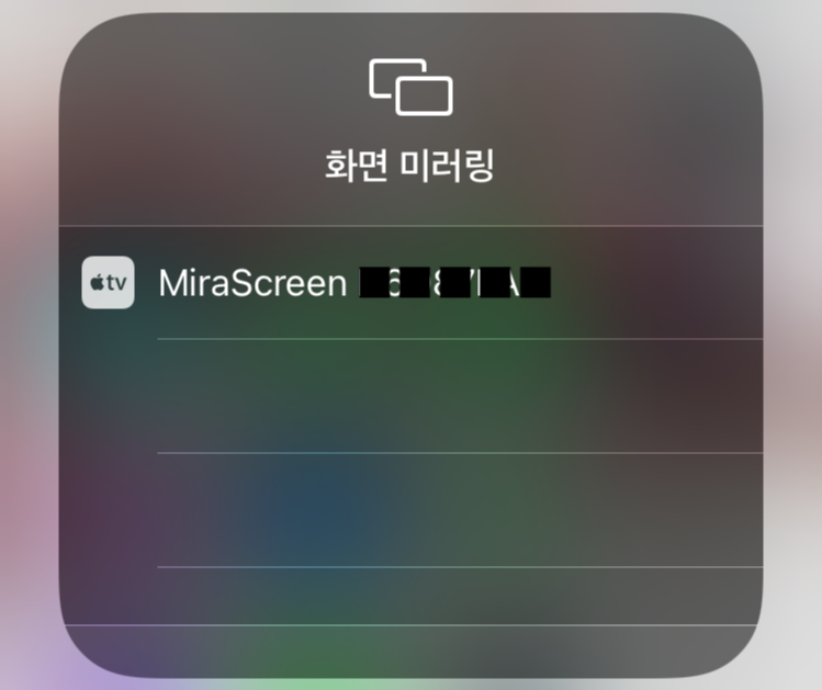 5. 아이폰에서는 다음과 같이 화면 미러링을 이용하여 모니터에 폰 화면을 무선으로 보낼 수 있다.