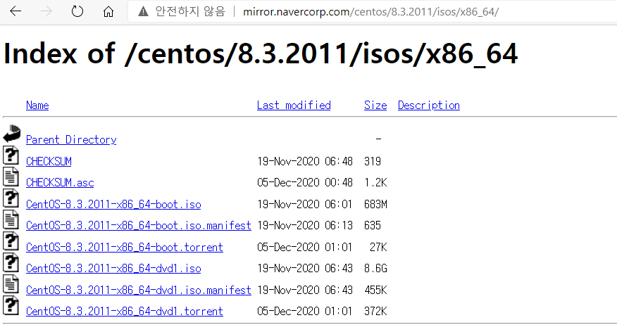 3. http://mirror.kakao.com/centos/8.3.2011/isos/x86_64 click (In Korea, for download speed)