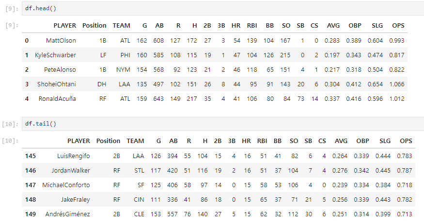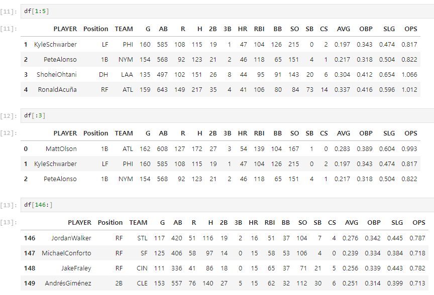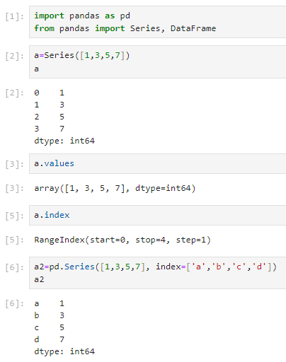 - Index is automatically generated with default values of 0, 1, 2, 3, ...