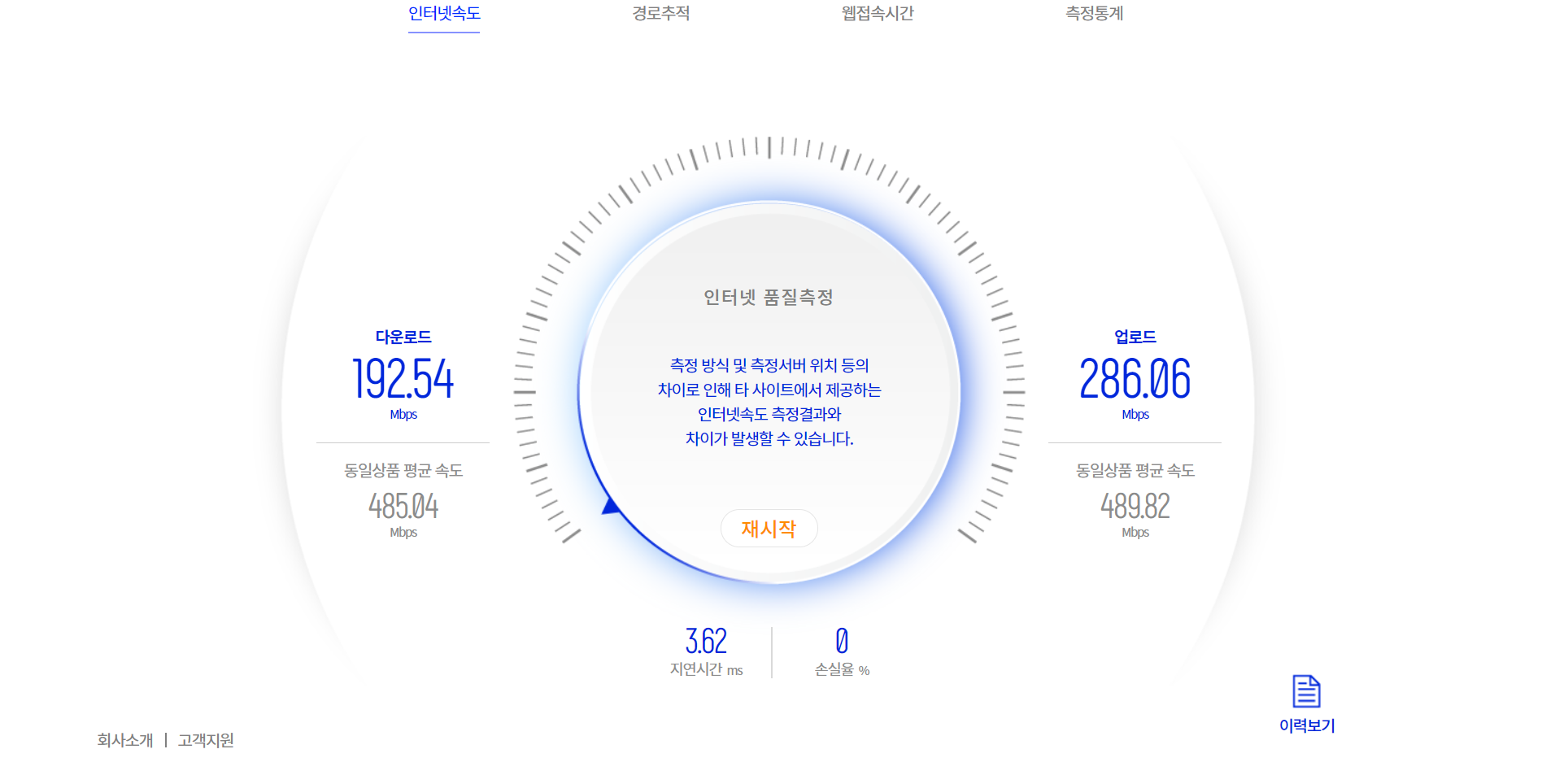 - Lan 케이블 장착 후 인터넷 속도 측정